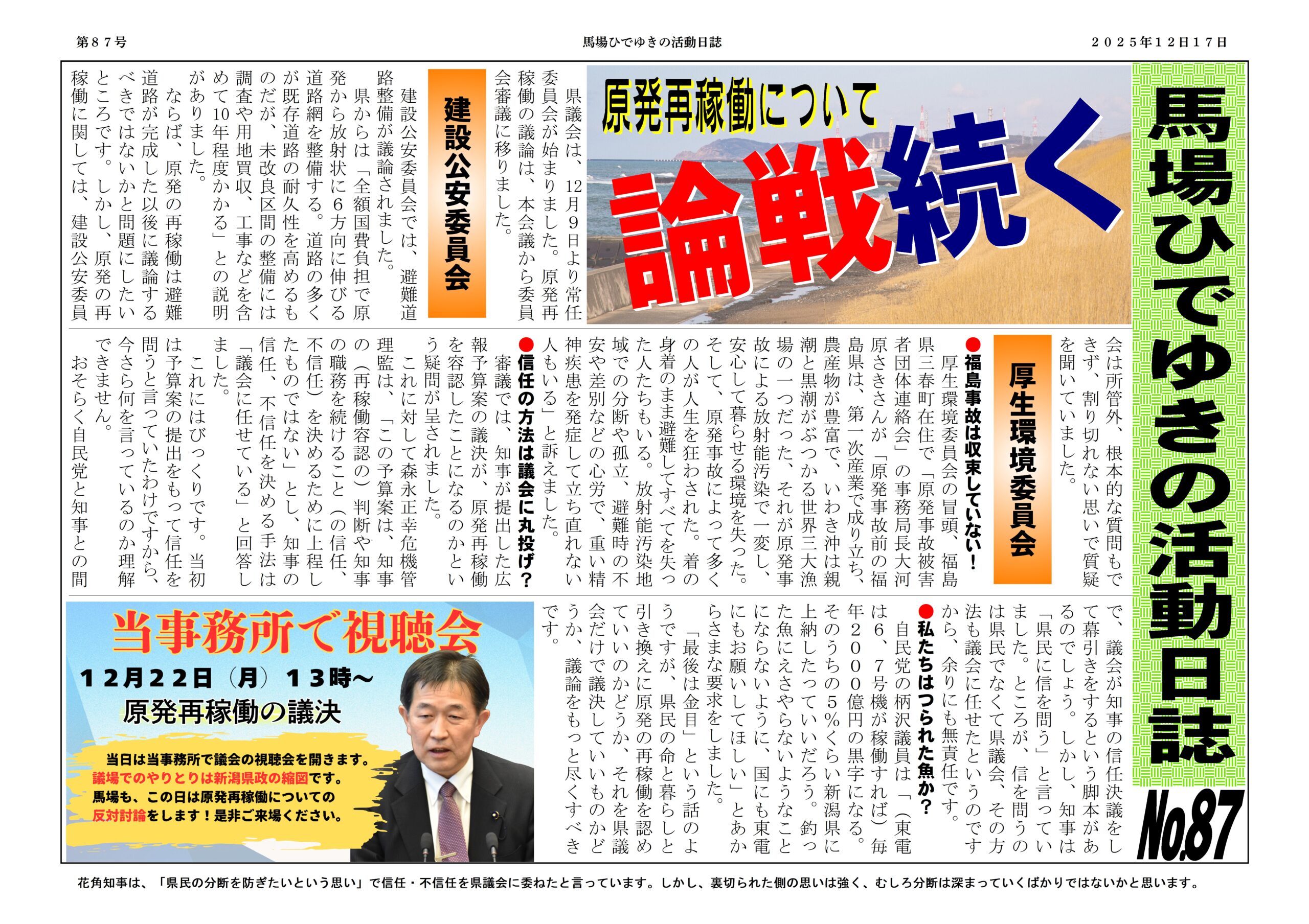 馬場ひでゆきの活動日誌87